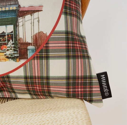 Cojín de terciopelo y cuadro escocés