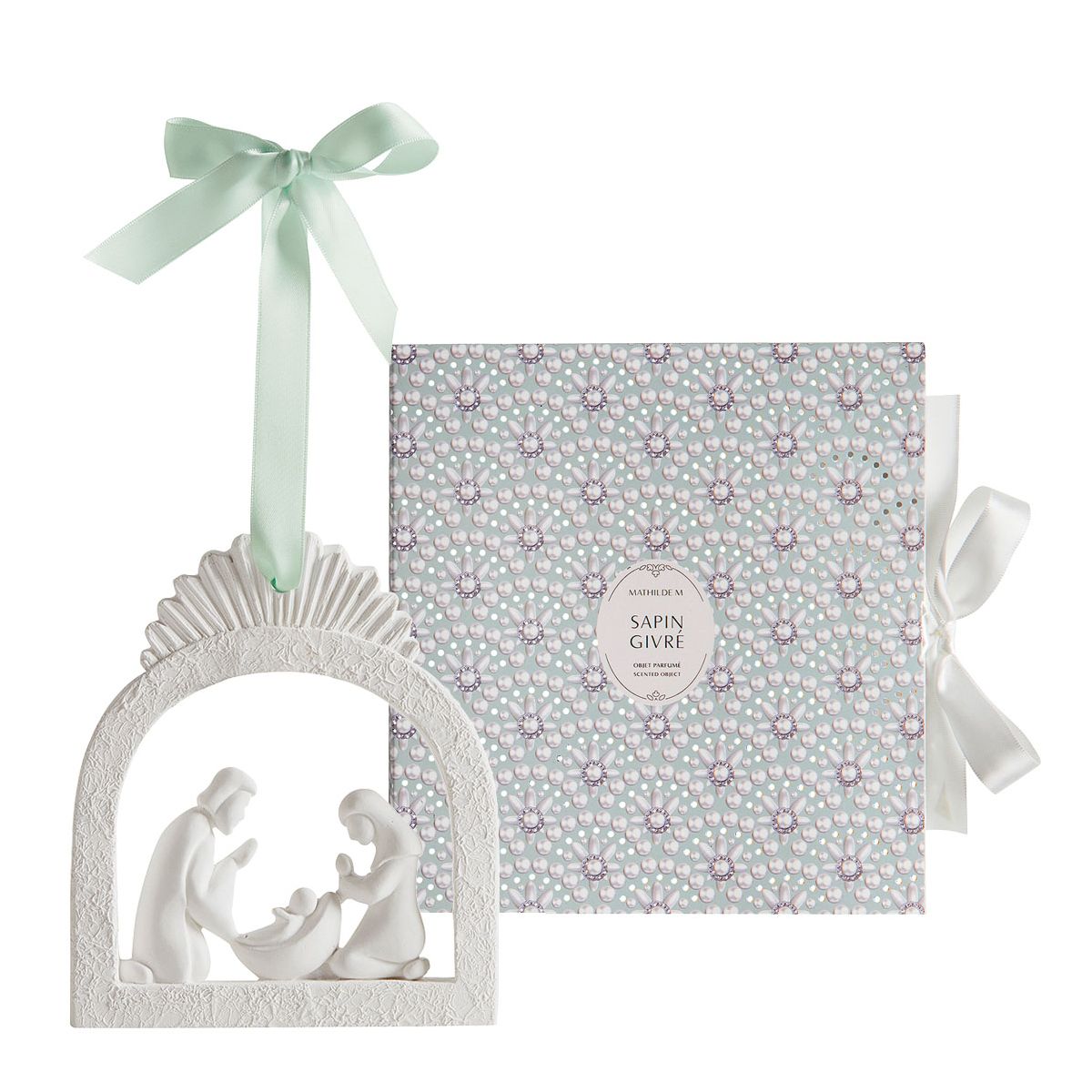 El Belén perfumado Fête Nacrée de Mathilde M combina la belleza artesanal del yeso moldeado a mano con la frescura envolvente de la fragancia Sapin Givré, un perfume que evoca un paseo por el bosque bajo la nieve en pleno invierno.