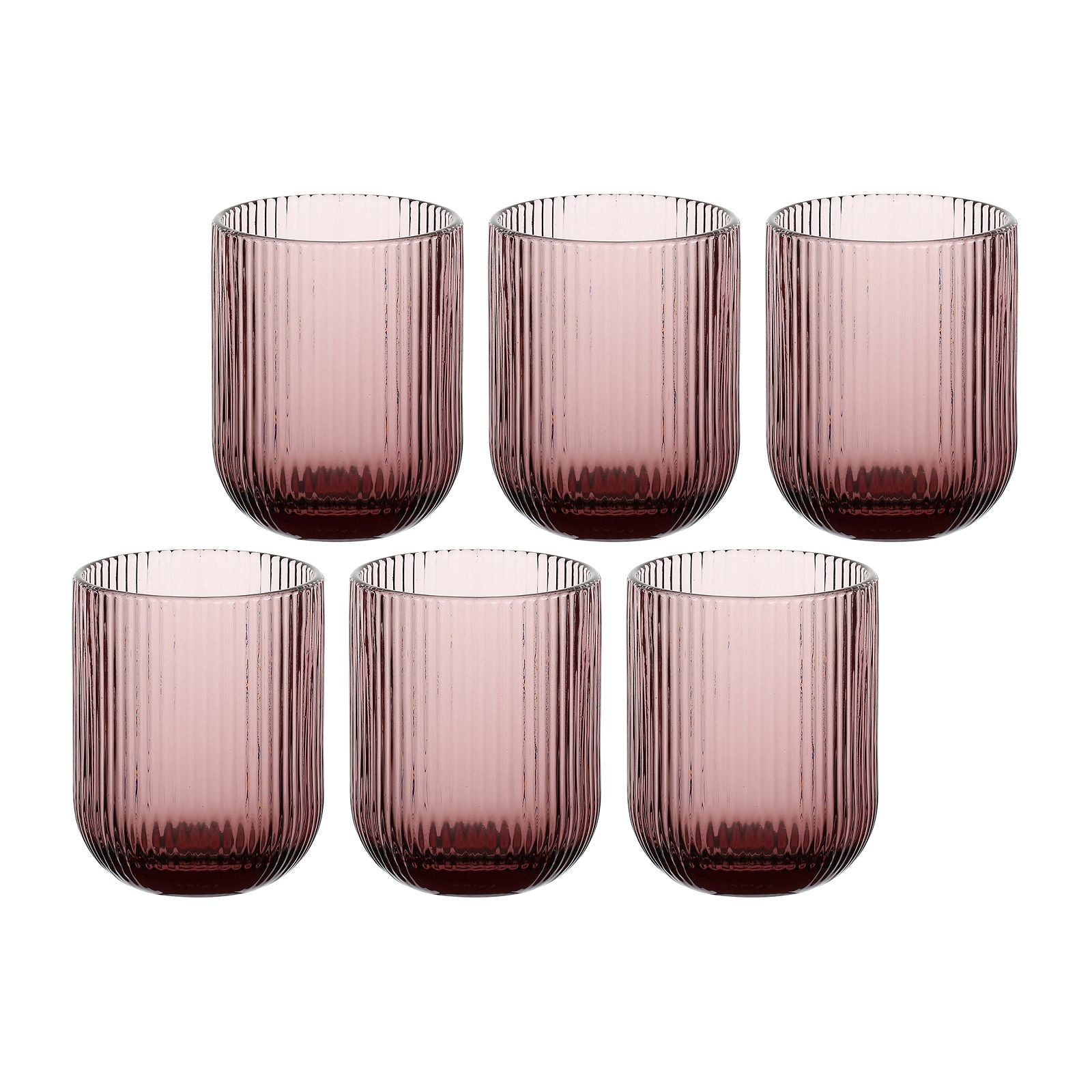 El set de vasos Twisty combina elegancia y funcionalidad en piezas de vidrio trabajado con un acabado en rosa púrpura que aporta un toque moderno y distintivo a la mesa.