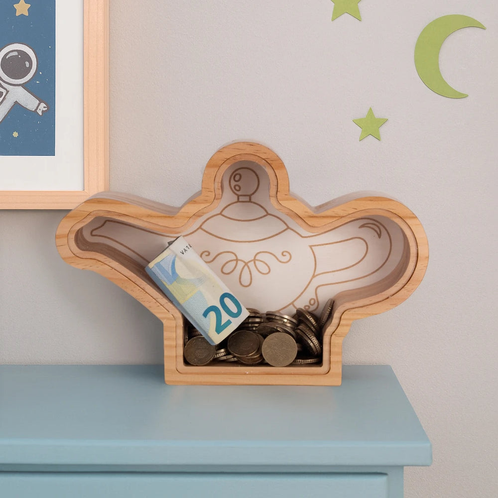 - Hecha de madera natural con tapa frontal de metacrilato transparente.